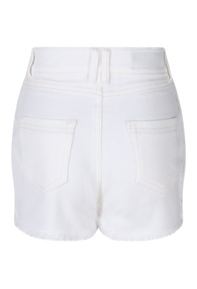 Deze stoere high waist short voor meisjes is gemaakt van een comfortabele denim. De lace tape en de rafeltjes langs de rand geven de short een speelse, trendy uitstraling. Perfect voor een zomerse look met een edgy twist!
