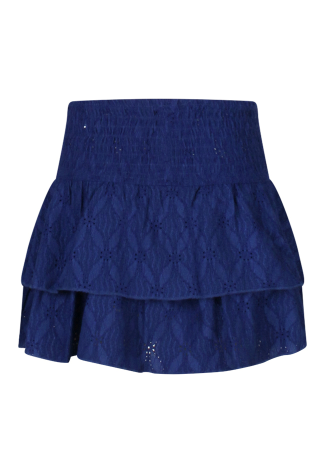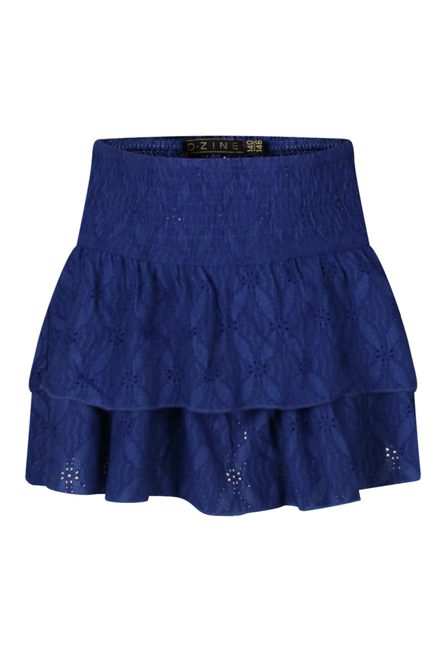 Dit prachtige strokenrokje van ajour met hoge elastische smock taille draagt heerlijk omdat de taille mooi omsluit. Het rokje is kort en heeft daarom een broekje eronder en dat vinden wij super! T-shirtje er op en klaar!