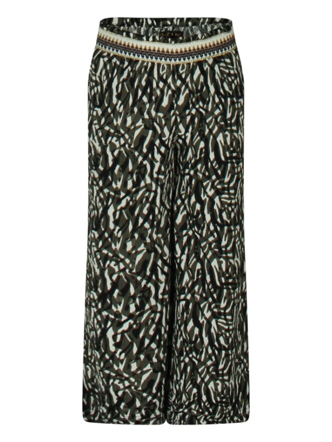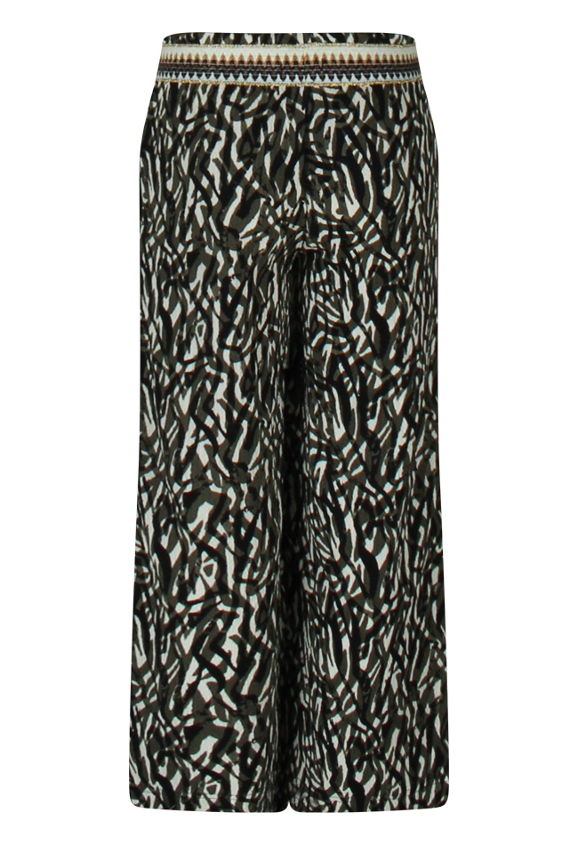 Deze lange broek met dierenprint is de perfecte match voor een stijlvolle en comfortabele look. Met een elastische tailleband voor optimaal draagcomfort. De rechte pijp en twee handige steekzakken maken 'm zowel praktisch als trendy, ideaal voor elke gelegenheid! Combineer de broek met de bijpassende blouse of een van de andere items uit de collectie voor een complete outfit.