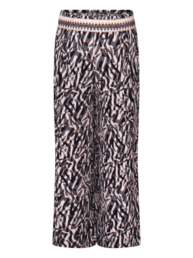 Deze lange broek met dierenprint is de perfecte match voor een stijlvolle en comfortabele look. Met een elastische tailleband voor optimaal draagcomfort. De rechte pijp en twee handige steekzakken maken 'm zowel praktisch als trendy, ideaal voor elke gelegenheid! Combineer de broek met de bijpassende blouse of een van de andere items uit de collectie voor een complete outfit.