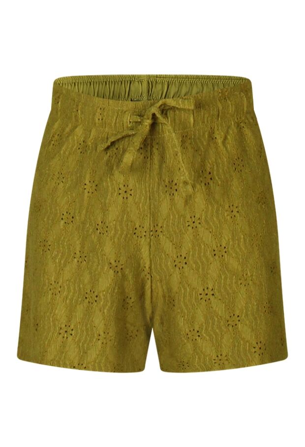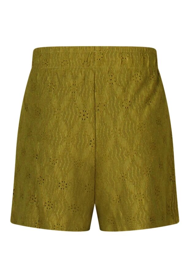 Dit leuke zomerse ajour korte broekje met binnen broekje heeft een comfortabele elastische tailleband met koord. Ontzettend leuk te combineren met het bijbehorende shirt met art.nr. Z90421