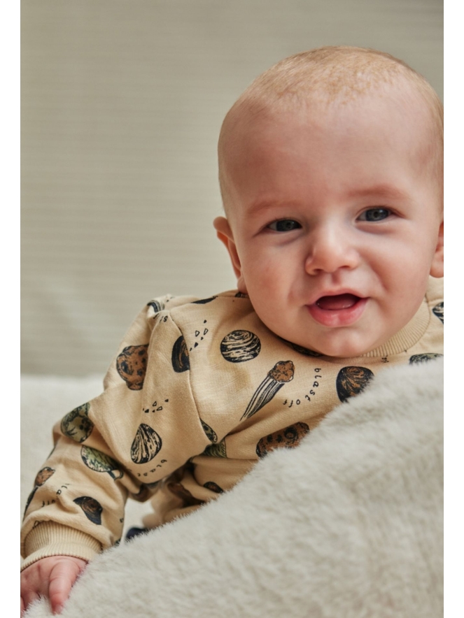Loose fit sweater voor babyjongens. Deze zachte sweater is perfect voor kleine ruimtefans met een leuke planetenprint. Combineer hem met een stoere jeans voor een complete outfit die iedereen omver blaast!