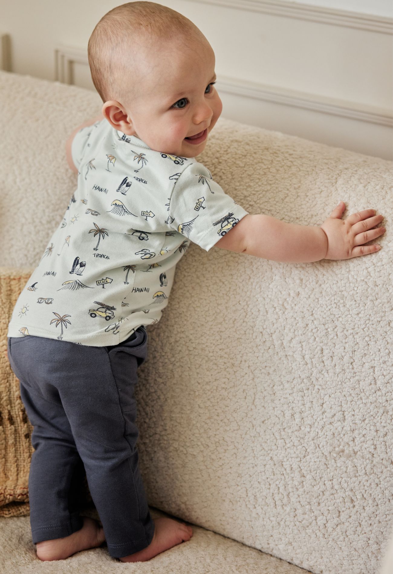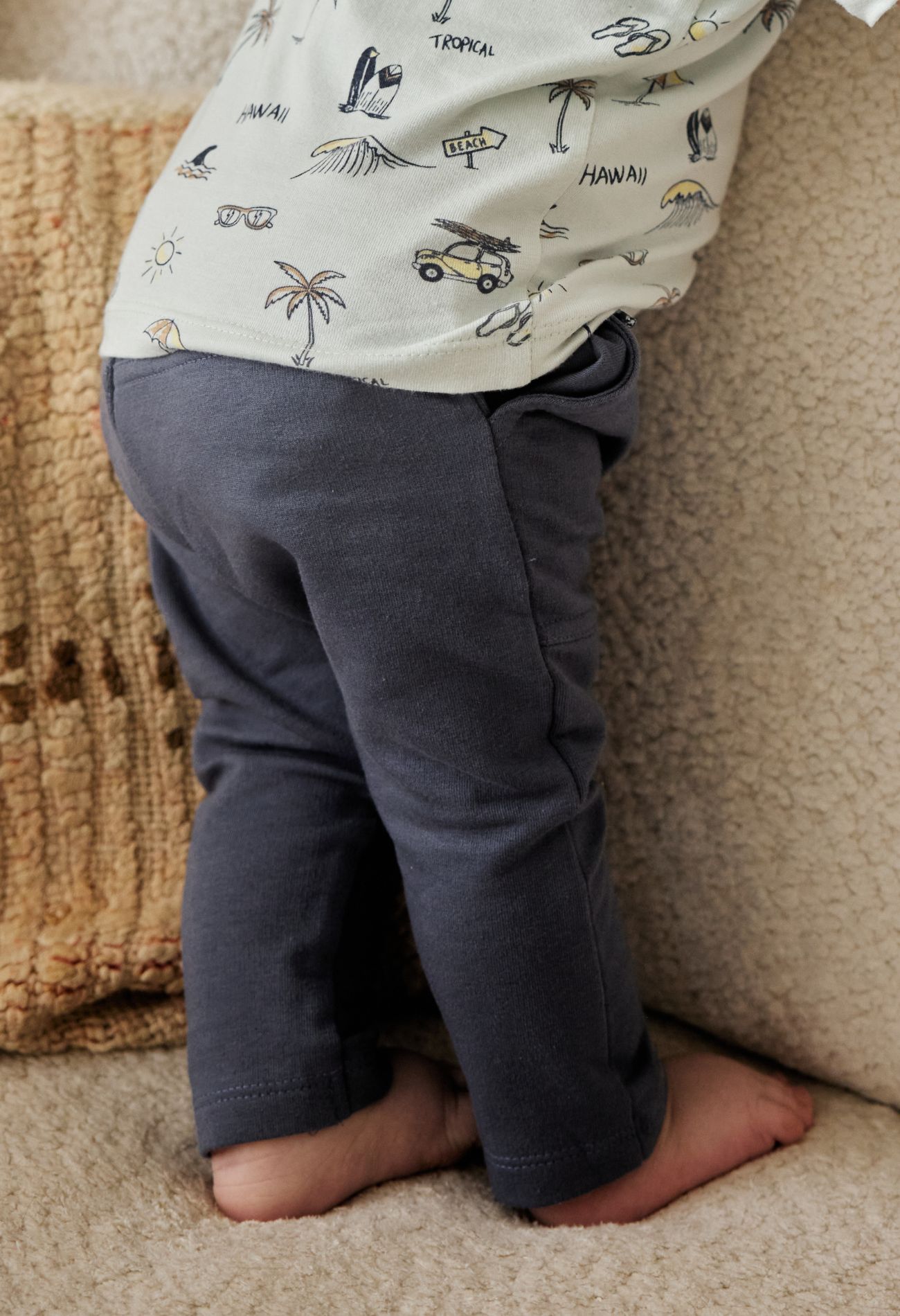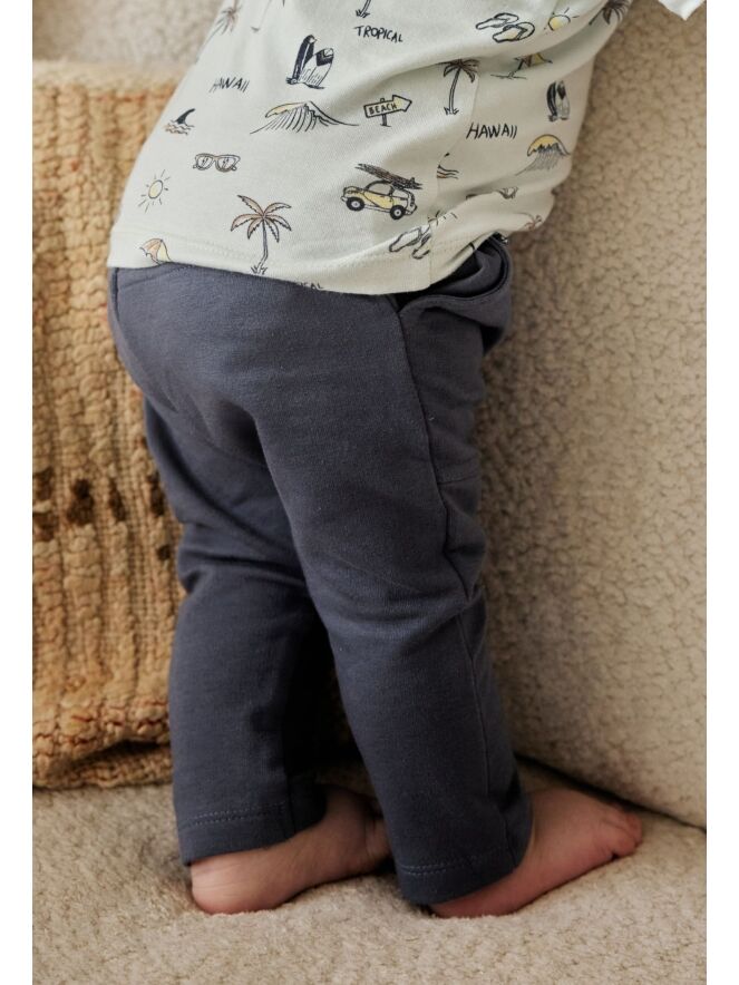 Dit heerlijke jogging broekje voor baby jongens heeft leuke details zoals een klepzakje op het been, steekzakken en een sierkoordje aan de voorkant. Combineer het met een T-shirtje of sweater en die kleine man kan weer toonbaar de deur uit!
