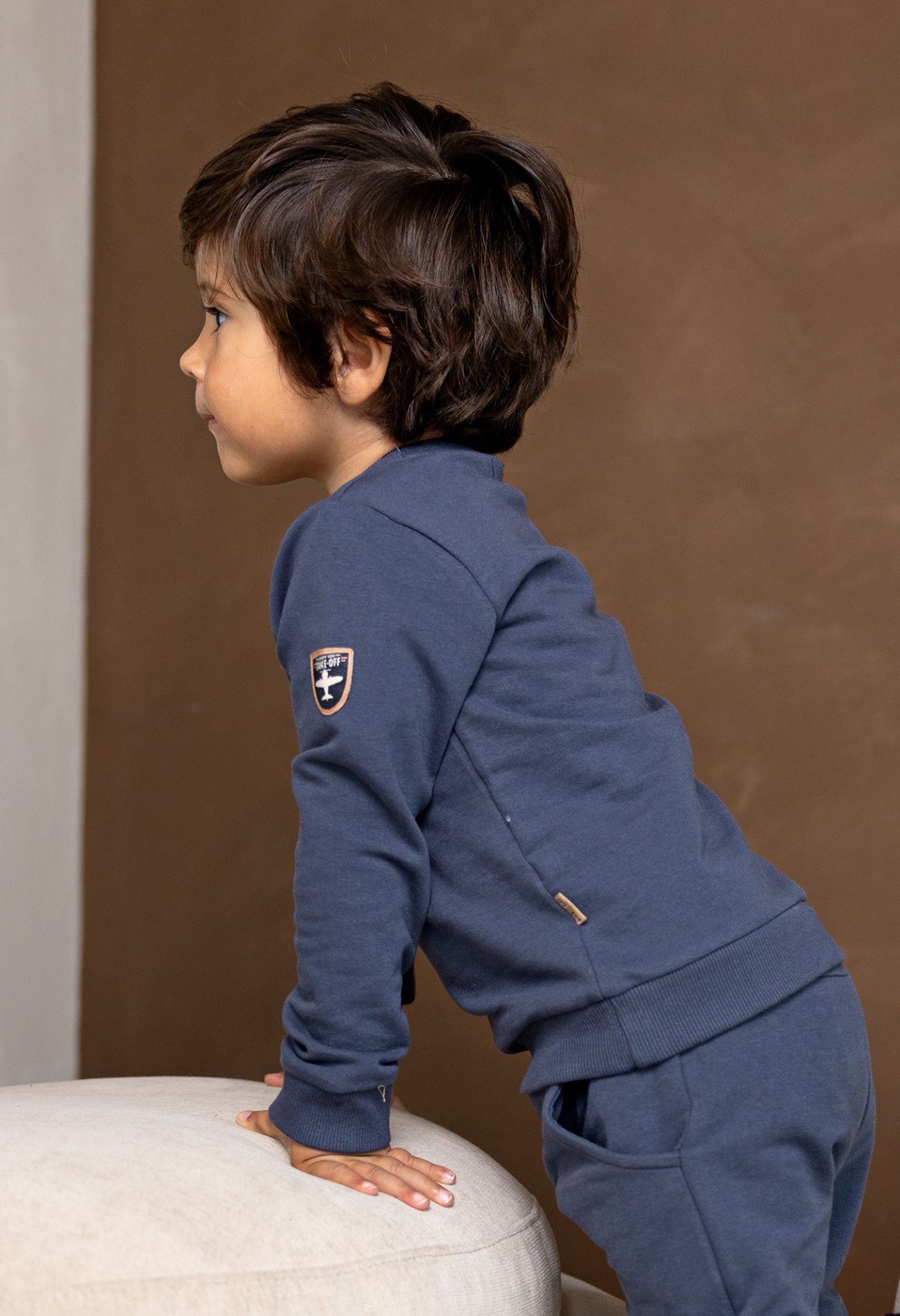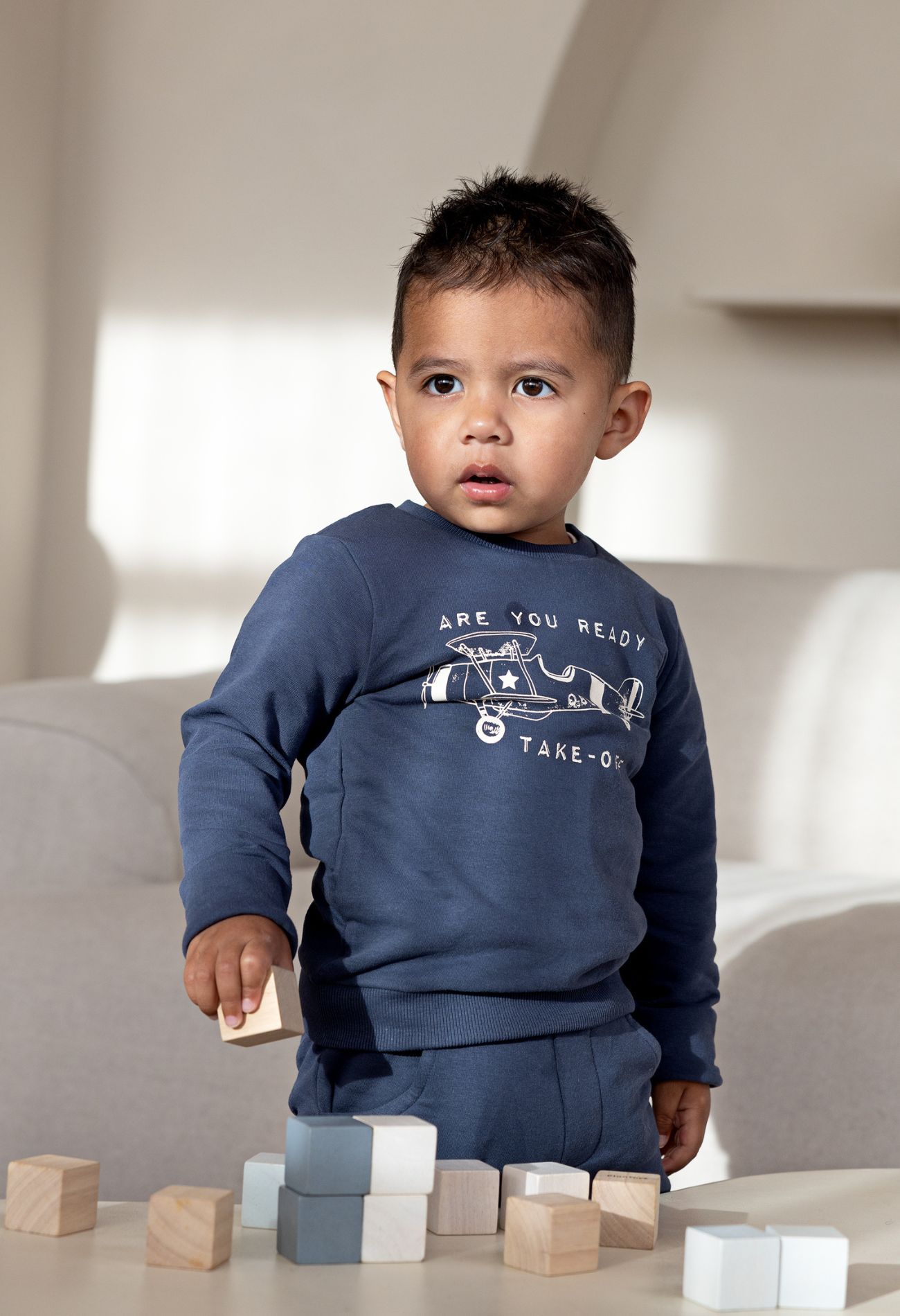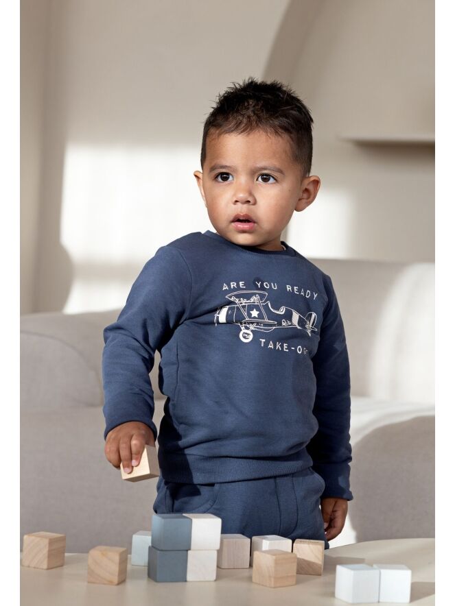 Are you ready for take-off? Deze leuke sweater met vliegtuig print heeft ook nog een vlieg embleem op de arm!