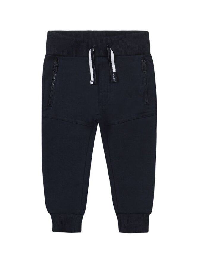 Deze joggingbroek voor baby jongens heeft 2 ritszakjes en een sierkoord vanuit de taille. Een bijpassend vestje is verkrijgbaar onder art.nr. R50567-35