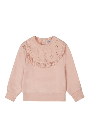 Deze 2-delige set bestaat uit een t-shirt met korte ruchemouwen een allover streepprint en voorop een tekstprint. Het bijpassende short heeft voorop twee ruchestrepen over de lengte.