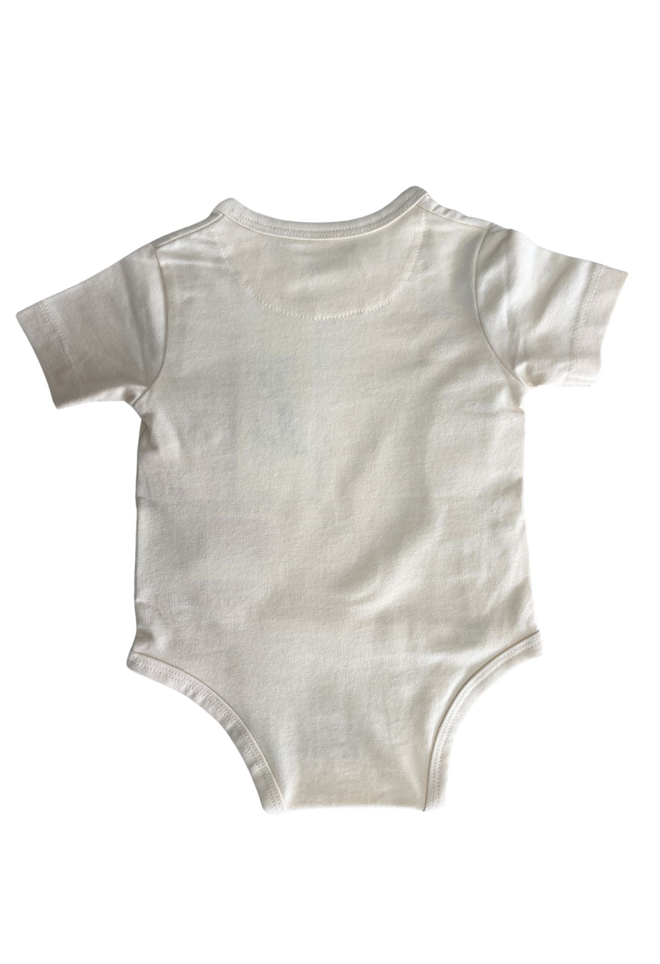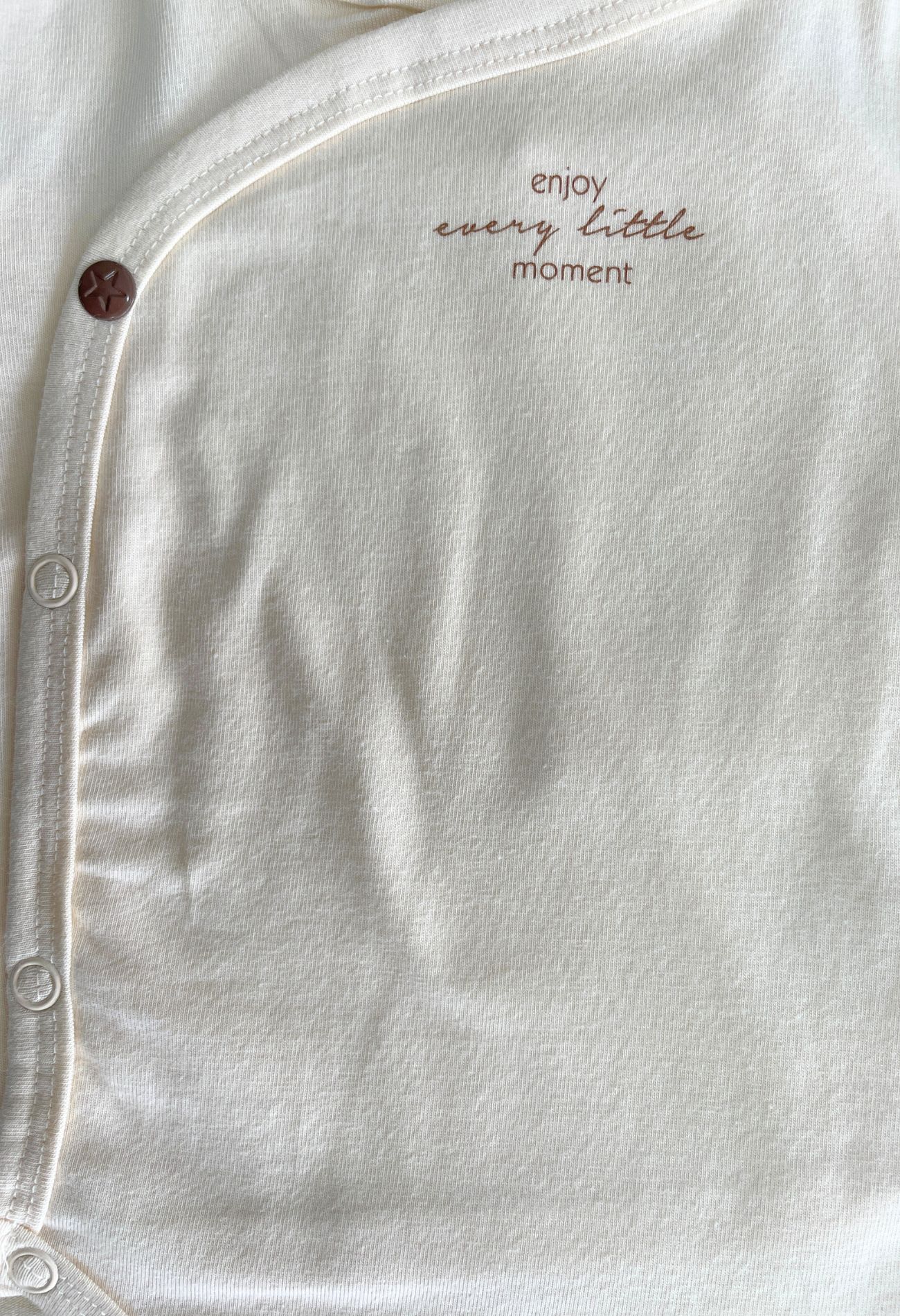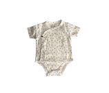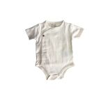 Deze overslag romper heeft een korte mouw en is zeer geschikt voor deze tijd van het jaar! Van 95% Organisch katoen, verantwoordt voor jouw kleintje en voor het milieu! Let op: De kleur off white heeft een kleine rib in de stof. De kleur zand heeft geen rib in de stof maar een kleine tekstprint.
