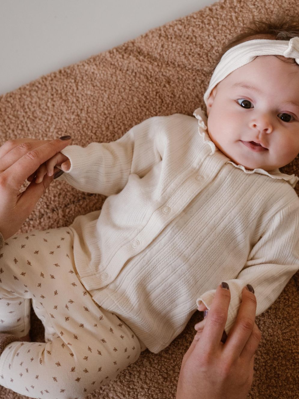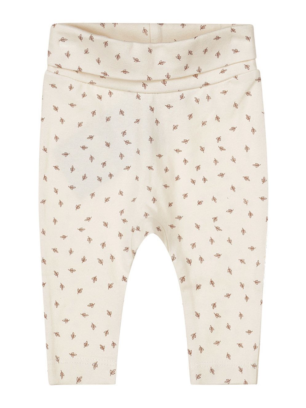 Fijn broekje van organic cotton met kleine blaadjes print. Dit broekje heeft een tailleband die teruggeslagen kan worden. Het bijpassende shirtje al gespot ?