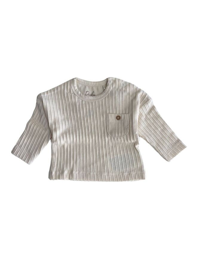Dit stoere comfortabele new born jongens shirt is vervaardigd uit organisch katoen en heeft een fijne dosis stretch. Op de voorkant zit nog een borstzakje met een houtlook knoopje. heb je het bijpassende broekje al gezien? Wij zijn in love!