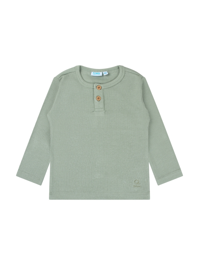 Effen serafino top met lange mouwen voor baby boys! Dit basic shirt hebben we in meerdere verschillende rustige kleuren. Met een kleine rib in de stof en lekker stretchy voor een hoog comfort gehalte.