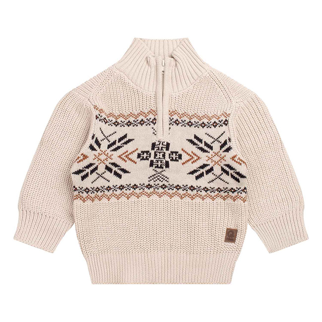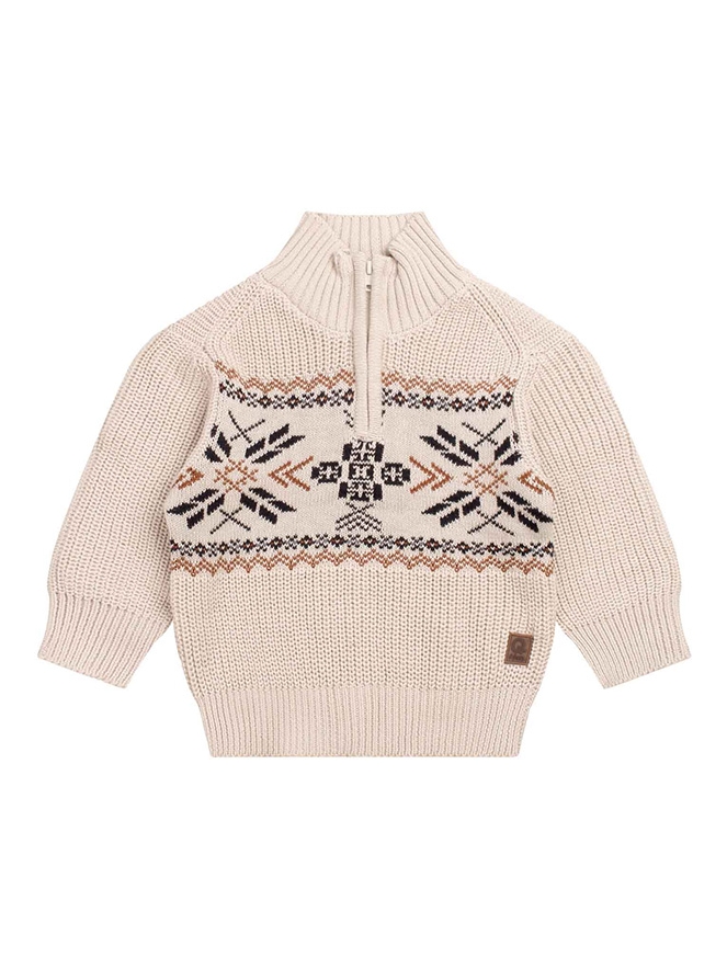 Deze schipperstrui is een warme en stijlvolle keuze voor baby jongens. Gemaakt van een comfortabele mix van katoen en acryl met een klassieke Noors dessin, straalt deze trui een tijdloze charme uit. Het schippertrui-model met ritssluiting zorgt ervoor dat je je kleintje gemakkelijk aan- en uit kunt kleden, terwijl de zachte brei zorgt voor extra comfort tijdens de koelere dagen.