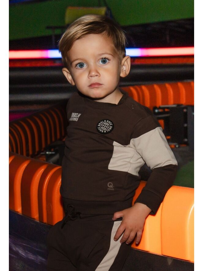 Stoere Brooklyn sweater met colorblock patroon. Deze sweater past perfect met de sweatbroek met hetzelfde kleurpatroon. Het art.nr. hiervan is W10298.