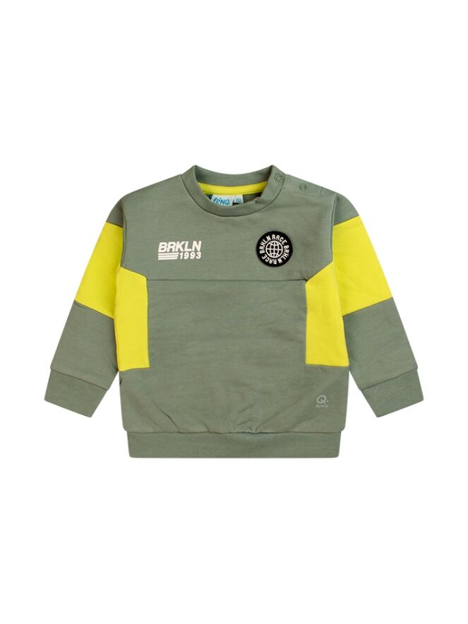 Stoere Brooklyn sweater met colorblock patroon. Deze sweater past perfect met de sweatbroek met hetzelfde kleurpatroon. Het art.nr. hiervan is W10298.