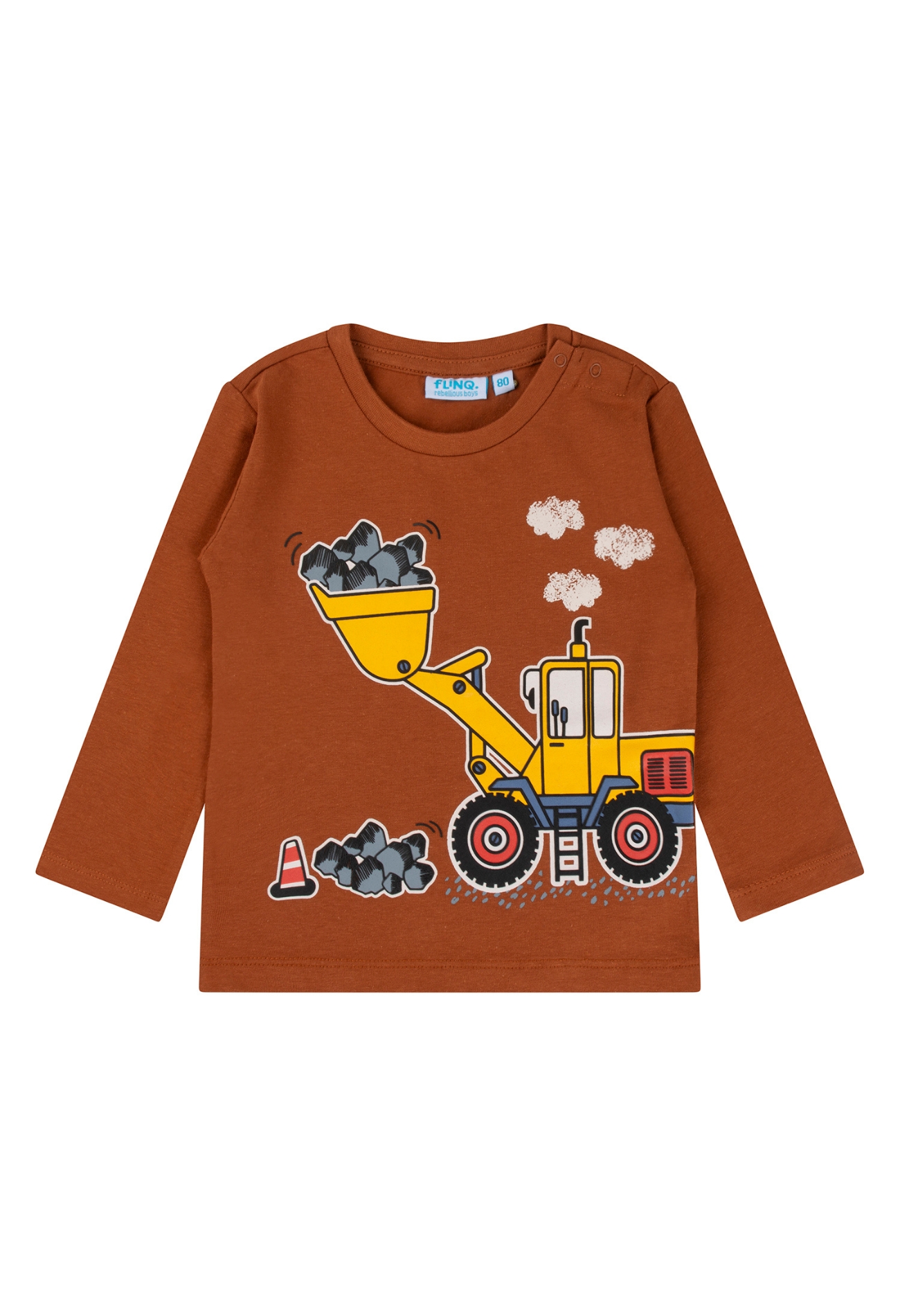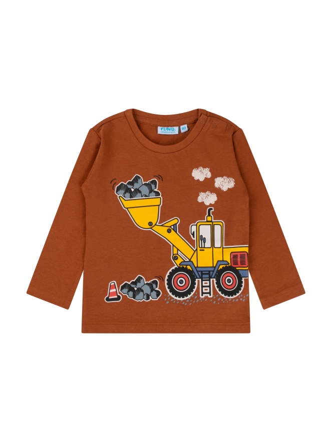 Stoer shirt met een bouw bulldozer. Voor de stoere kleine mannen look. Worden ze trots van :-) en past altijd in de collectie shirts met machines!