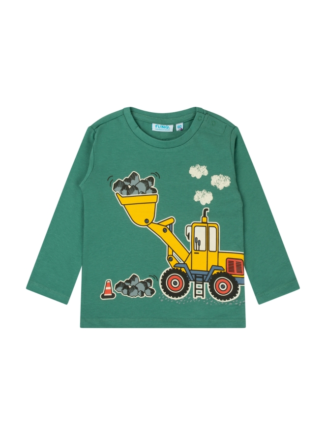 Stoer shirt met een bouw bulldozer. Voor de stoere kleine mannen look. Worden ze trots van :-) en past altijd in de collectie shirts met machines!