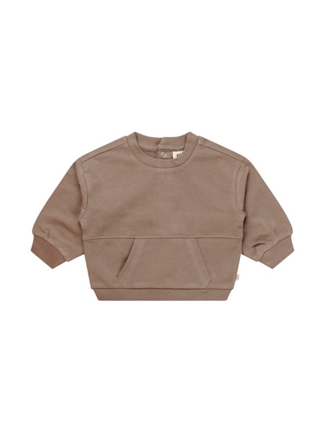 Deze zachte sweater voor newborn baby jongens is ideaal voor een comfortabele en stoere look. De kangoeroezak op de voorkant geeft de sweater een casual uitstraling én een speels detail. Gemaakt van een comfortabele sweatstof die zacht is voor de gevoelige babyhuid. Combineer hem met de bijpassende broek (W10327) voor een complete, gecoördineerde outfit.