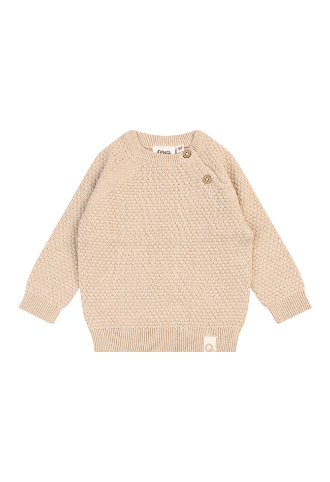 Deze zachte, effen sweater van Flinq voor je newborn is zowel praktisch als stijlvol. Dankzij de twee knopen aan de voorkant trek je hem makkelijk over het hoofdje van je kleintje. Gemaakt van 100% katoen, met een ronde hals en lange mouwen