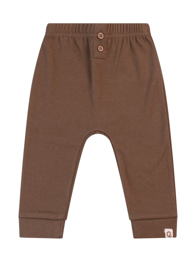 Superzacht broekje met schattige houten knoopjes, gecombineerd met een bijpassend shirtje met een beertje op de borstzak. Perfect als kraamcadeau of eerste outfit voor je kleintje. (W10351)