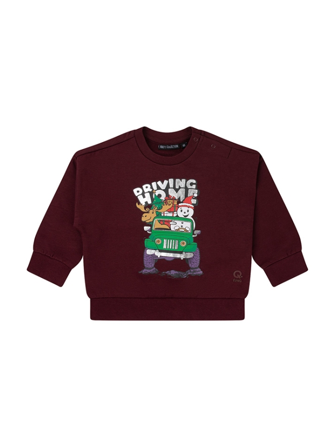 Baby jongens sweater met een kerstprint en de tekst ?Driving Home? op de voorkant. Zo is je kleintje helemaal comfortabel en feestelijk tijdens de feestdagen.