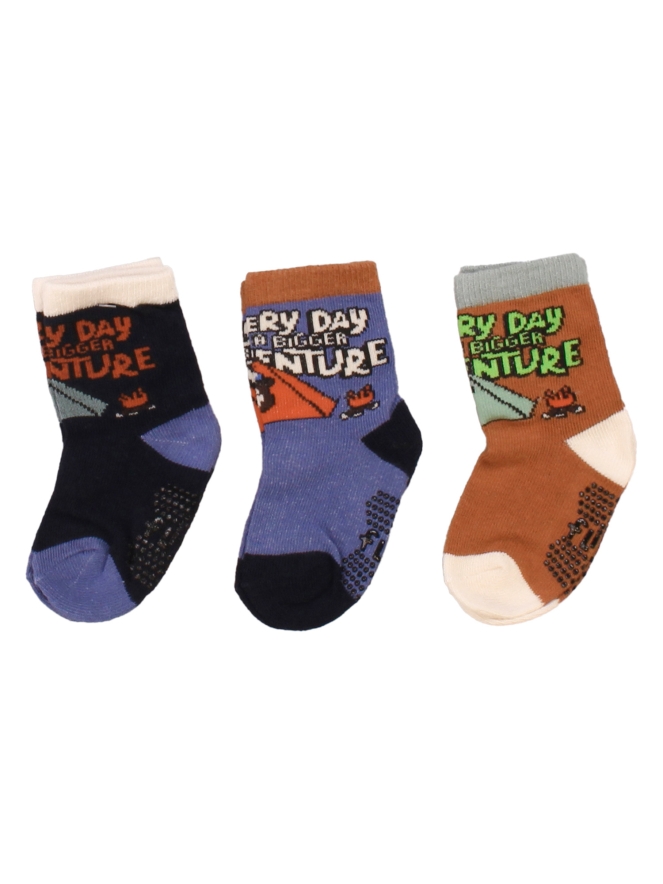 Adventure! Een 3-pack sokjes met anti slip onder de zool.