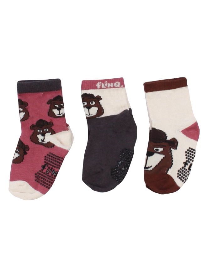3-Pack sokken met antislip onder de voet en beren.