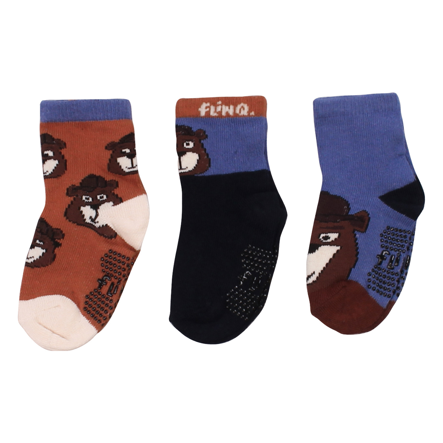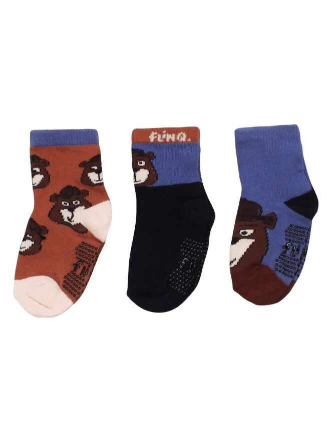3-Pack sokken met antislip onder de voet en beren.