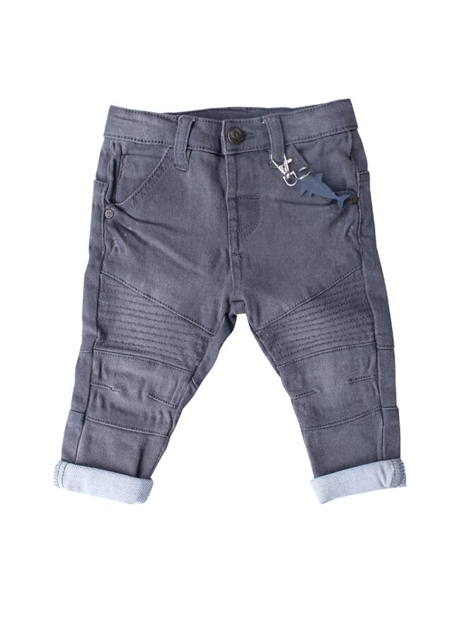 Jeans met sleutel hanger van Flinq. De jeans hebben kniestukken. De jeans is gemaakt van sweatdenim, dit is een comfortabele stof om lekker in te bewegen. Schuifknoop sluiting en er zit elastiek aan de binnenkant om de broek losser of strakker te maken. Materiaal: 76% katoen, 23% polyester, 1% elasthan. Wasvoorschrift: binnenstebuiten wassen op 40 graden, niet in de droger, strijken op een lage stand.