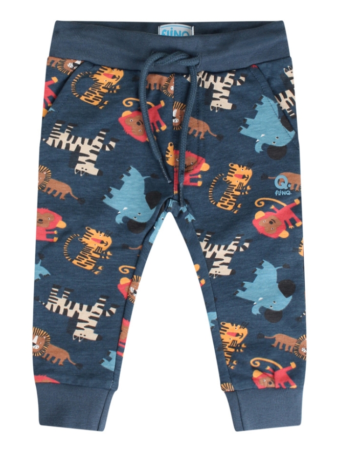 Baby jongens broek met elastische tailleband en twee steekzakken met en dierenprint.