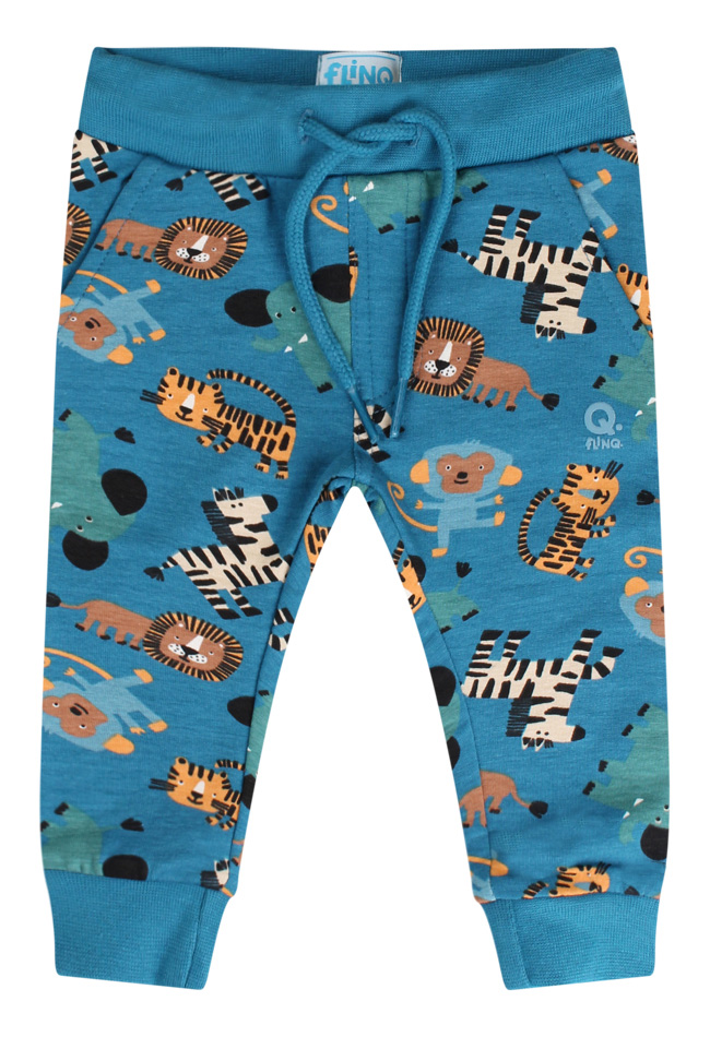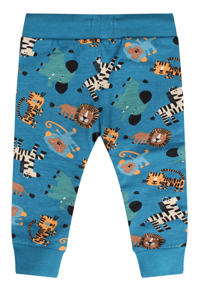 Baby jongens broek met elastische tailleband en twee steekzakken met en dierenprint.