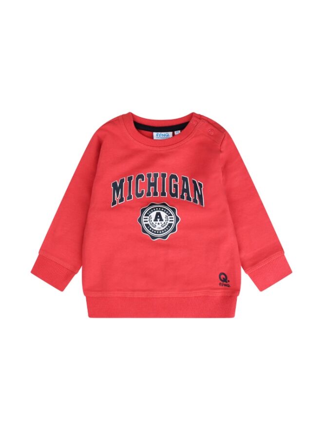 Comfortabele sweater met een ronde hals en een opvallende geplaatste tekstprint "Michigan" op het voorpand. Deze trendy sweater is perfect voor een casual en sportieve look. Voor de kleinste maten zijn er handige drukknoopjes op de schouders toegevoegd, waardoor het aan- en uittrekken een fluitje van een cent is. Een stijlvolle en praktische keuze voor zowel ouders als kinderen.