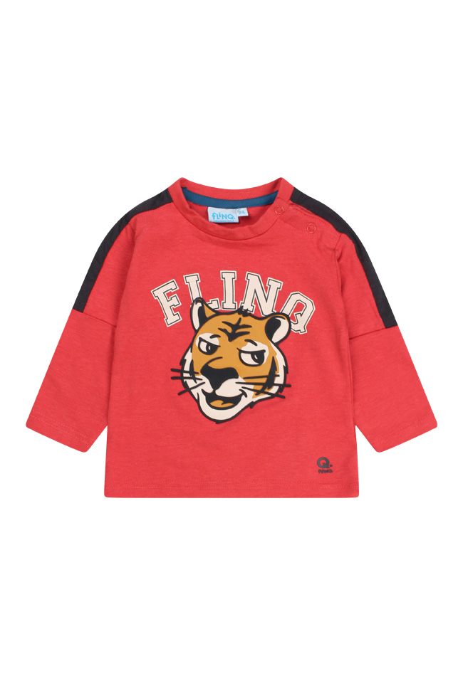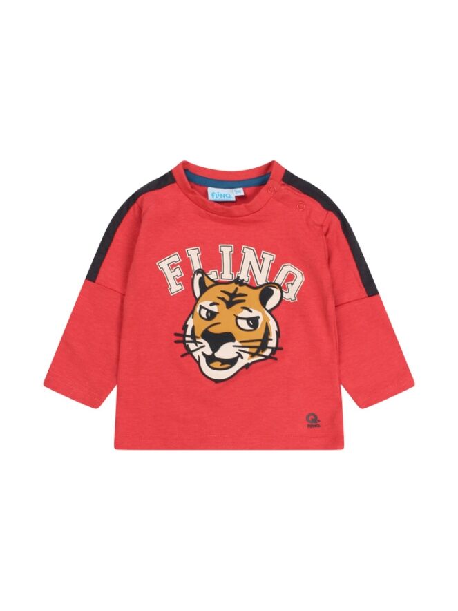 T-shirt met lange mouw en ronde hals. Met een tijgerprint op de voorzijde.