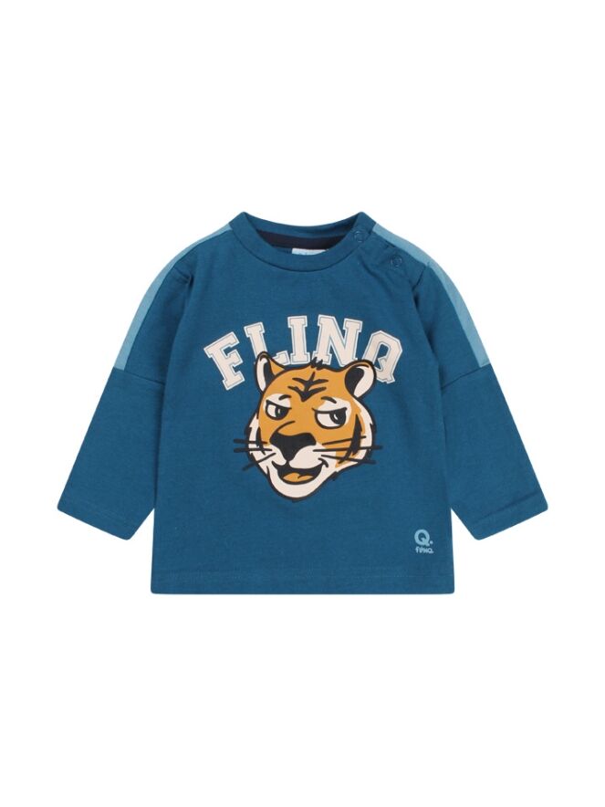 T-shirt met lange mouw en ronde hals. Met een tijgerprint op de voorzijde.