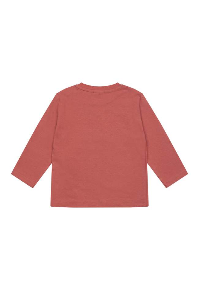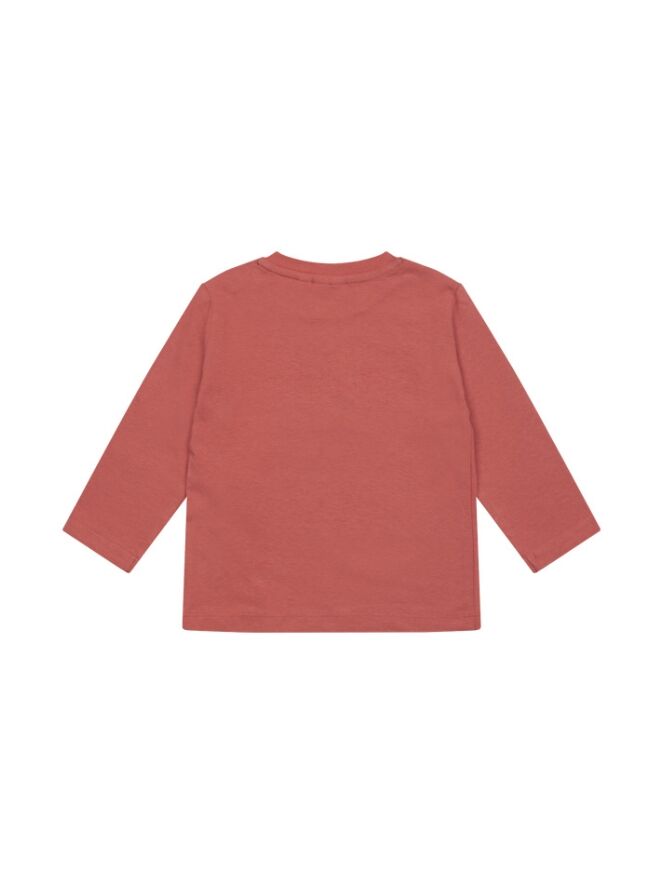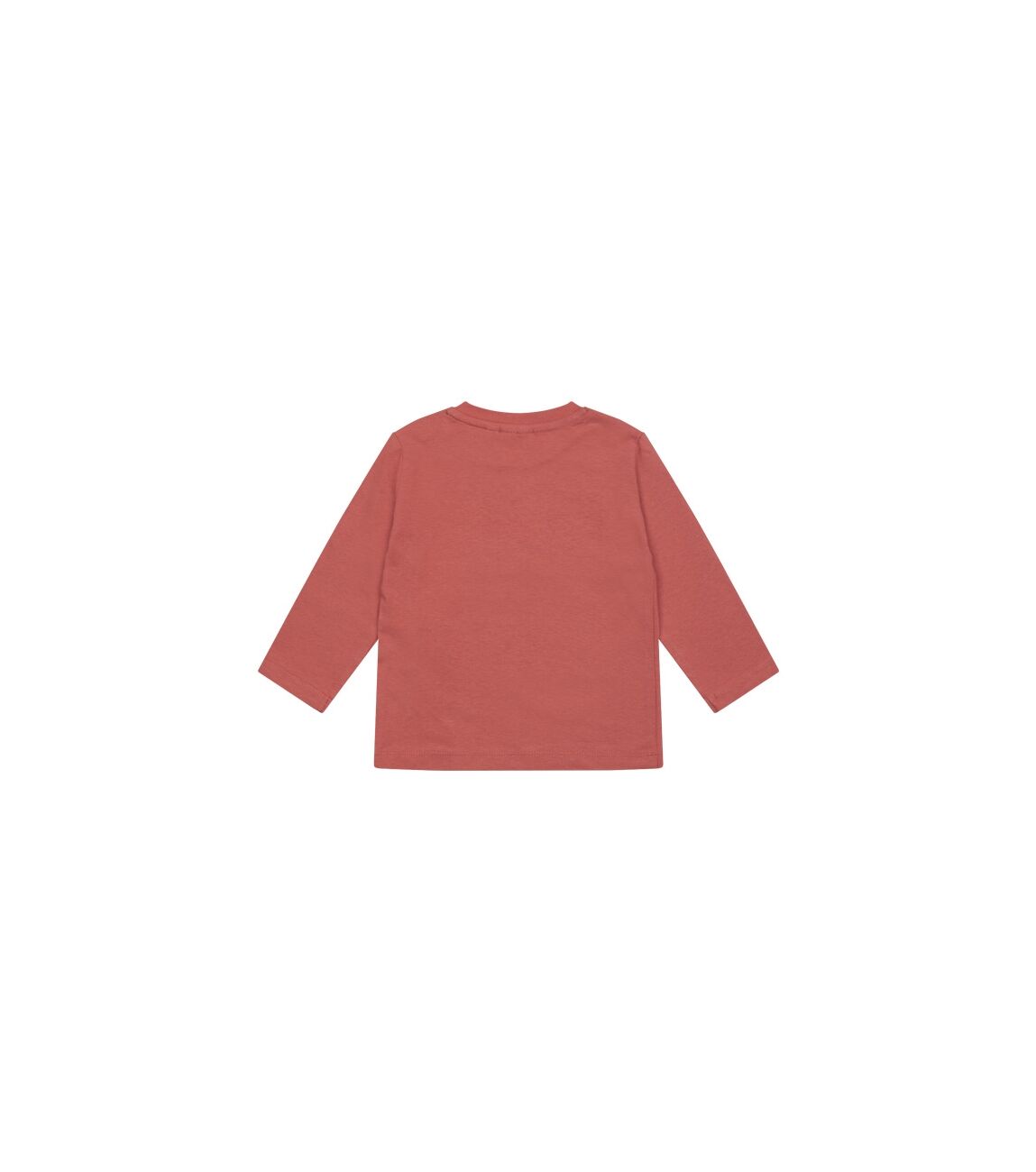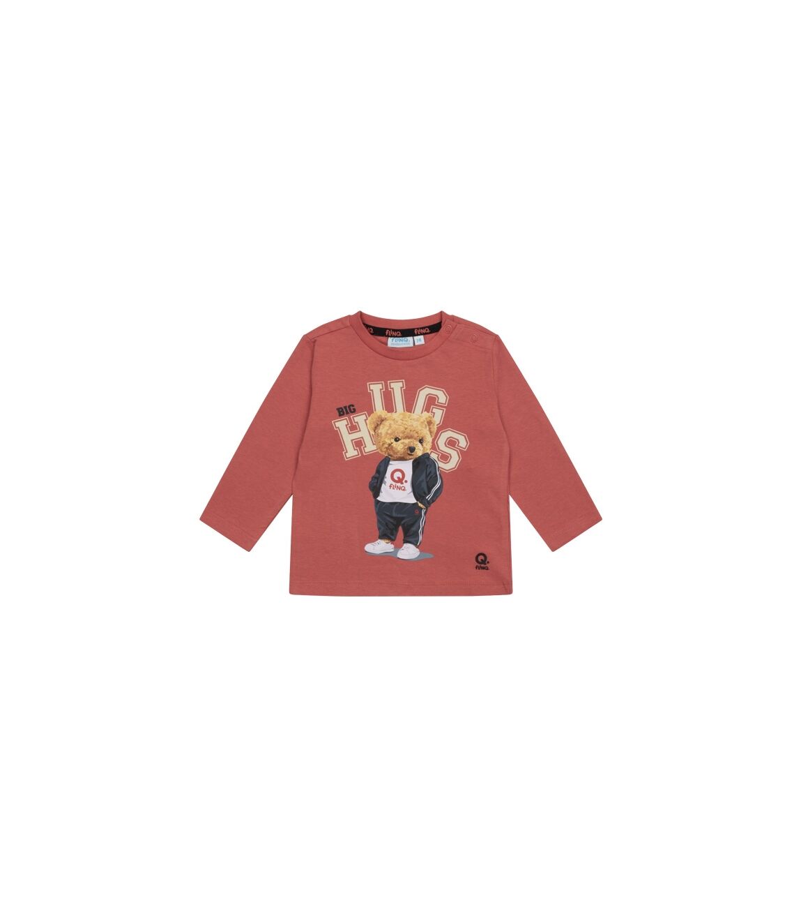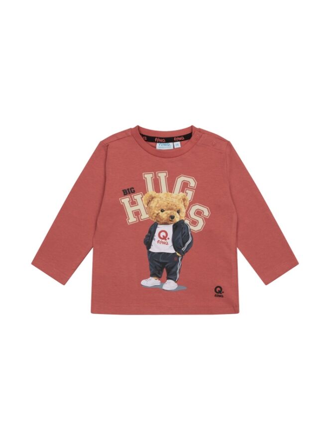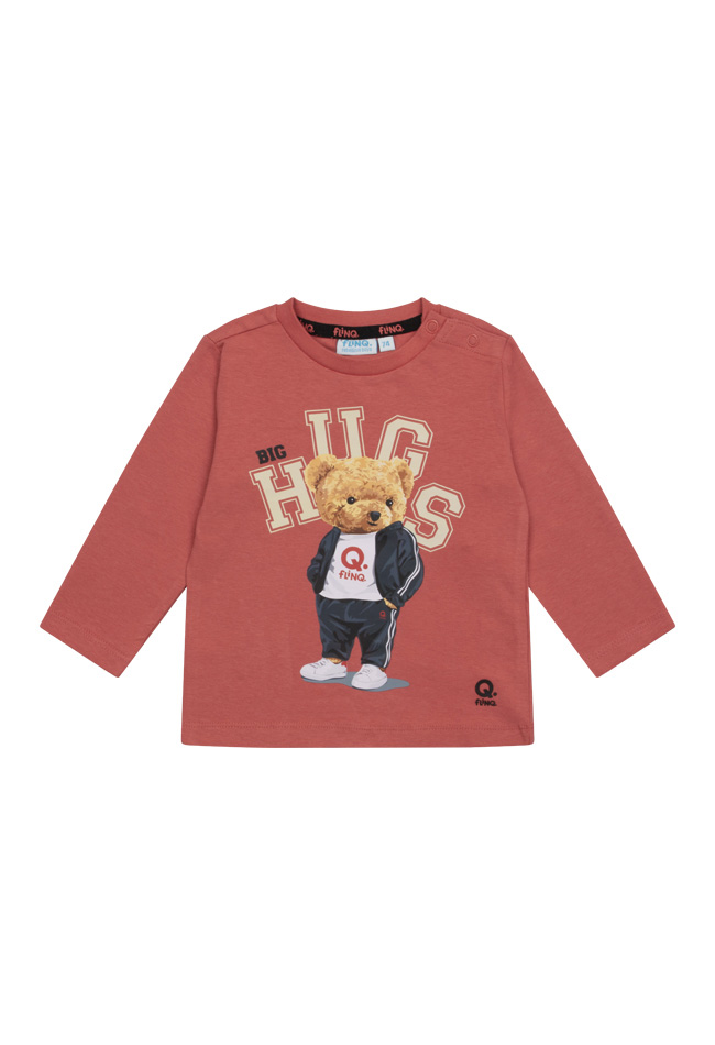 T-shirt met een ronde hals en lange mouwen. Op de voorkant zit een print van een teddybeer. De kleinste maten zijn voorzien van knoopjes op de schouders voor gemakkelijk aan- en uittrekken.