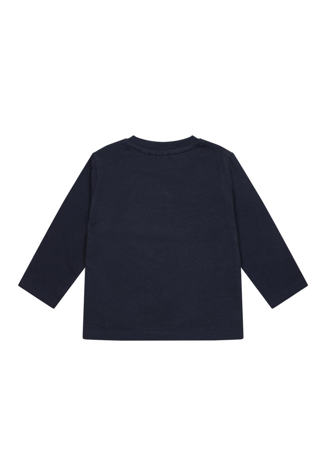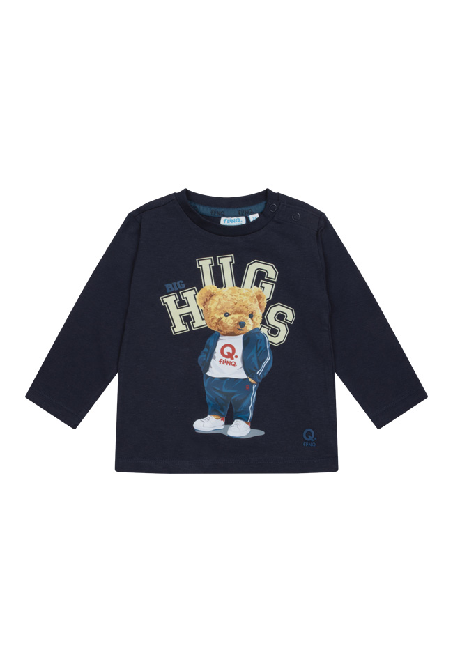 T-shirt met een ronde hals en lange mouwen. Op de voorkant zit een print van een teddybeer. De kleinste maten zijn voorzien van knoopjes op de schouders voor gemakkelijk aan- en uittrekken.