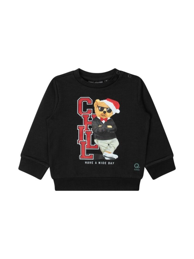 Deze sweater voor baby's uit onze party collectie heeft een print met teddybeer in kerstsfeer.