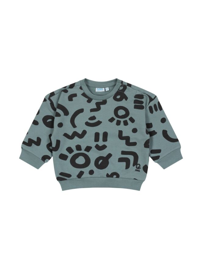 Sweater van zachte sweat stof met een getekend patroon. Makkelijk te combineren met een spijkerbroek en sneakers. Comfy, casual en trendy.