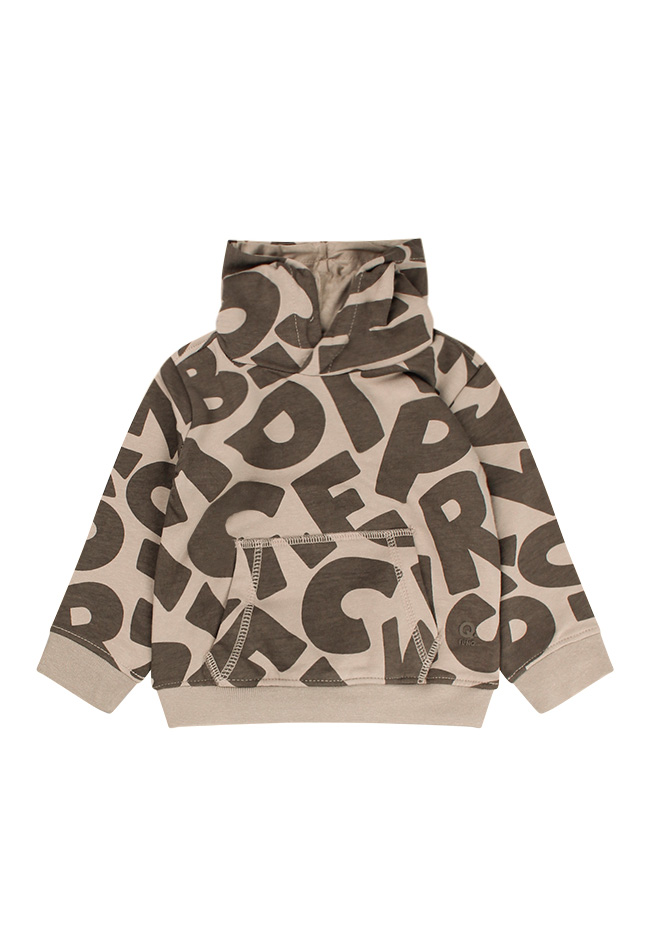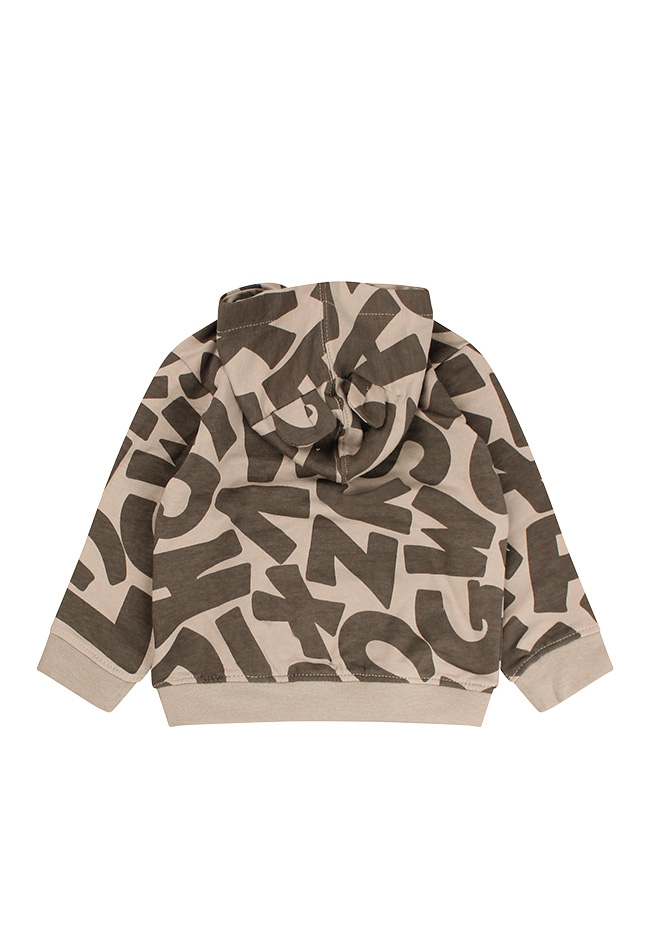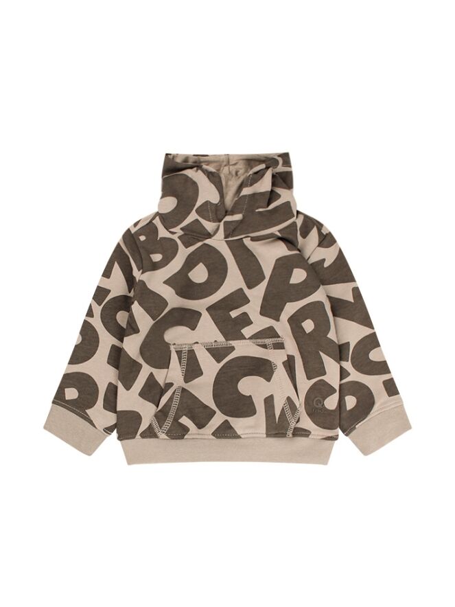 Deze hoodie sweater heeft een allover letterprint. Extra leuk detail is dat de capuchon twee oortjes heeft bovenop. Tijdloze stoere en makkelijk te combineren sweater. Voor een casual look. Helaas is de print op de zwarte sweater bijna niet zichtbaar.