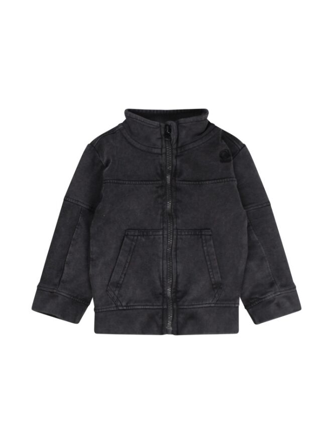 Dit warme vestje van sweat stof heeft een wassing gehad waardoor het een used look heeft. Door de hoge sluiting van de rits blijf je lekker warm om de hals. Warm voor in de winter of een fijn extraatje als het in de zomer maanden wat frisser is!