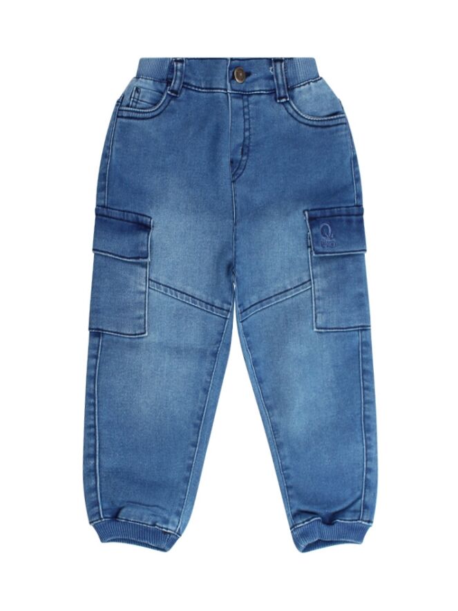 Jogjeans met zijzakken en een elastische tailleband.