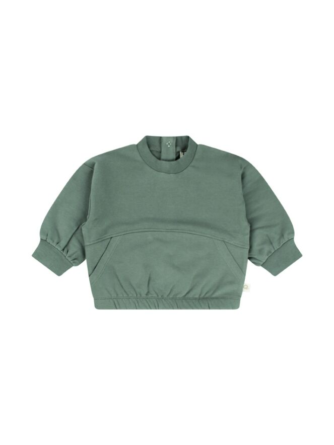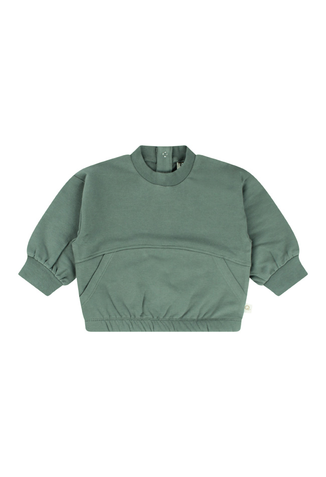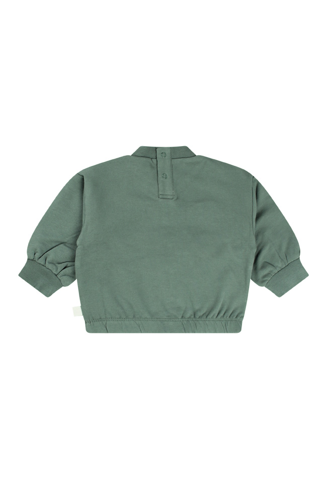 Deze newborn baby jongens sweater heeft een kangoeroezak aan de voorkant en een wijder model voor extra comfort. Drukknopen aan de achterkant van de hals zorgen voor gemakkelijk aan- en uittrekken.