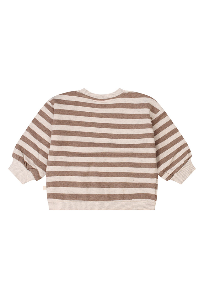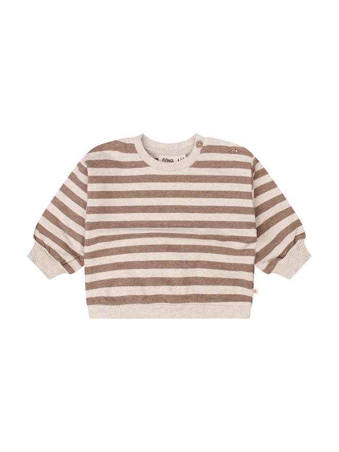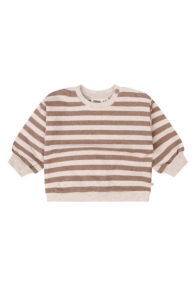 Fijne en vooral zachte sweater voor newborn baby boys. Met een mooie streep en houtlook knoopsluiting op de schouder. Tijdloos design.