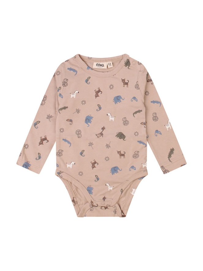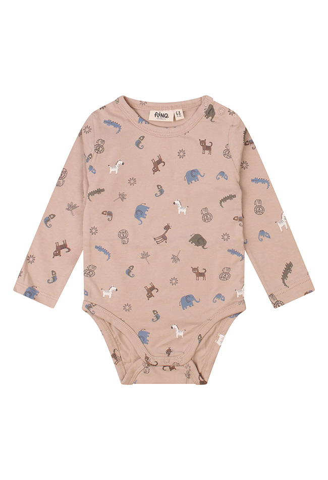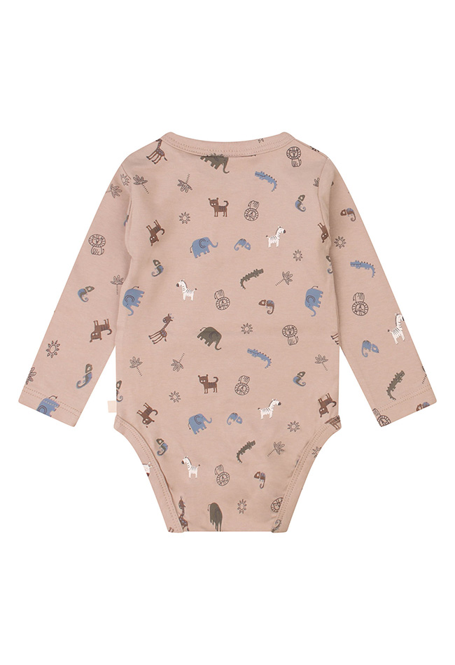 Leuke frisse romper van Bio katoen met een allover print met olifanten zebra's leeuwen giraffes en meer tropische beesten!