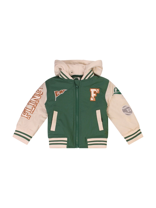 Baseball style is helemaal hot! Dit stoere sporty jongens jack heeft vele details wat dit jasje een echte stoere blikvanger maakt! De capuchon is van sweatstof en is uitneembaar! Hoe handig! Dit is een hardloper dus wees er snel bij!