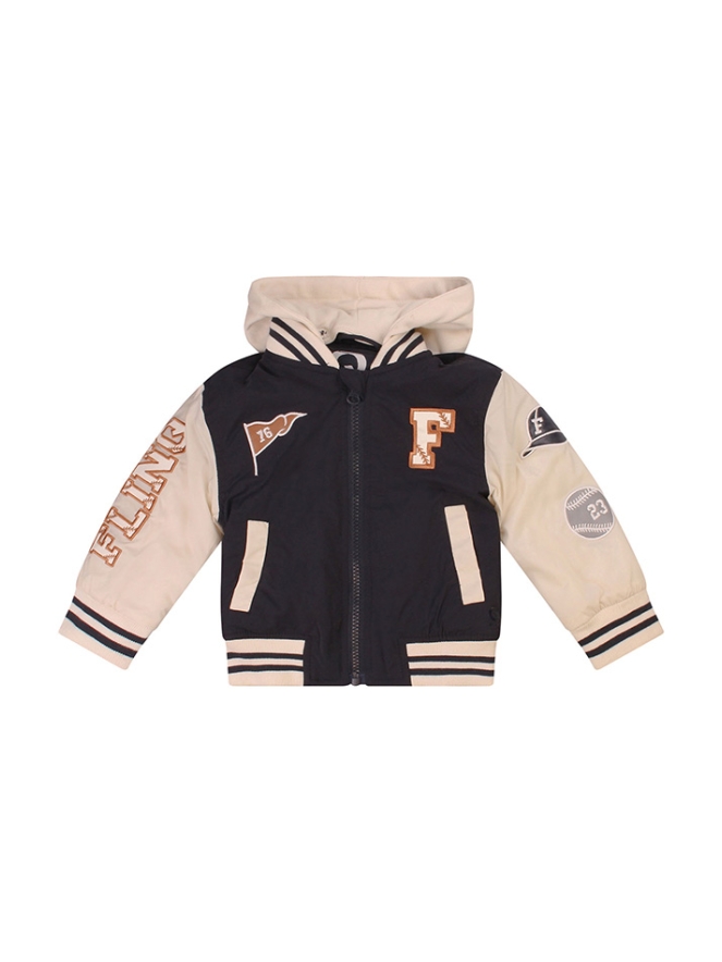 Baseball style is helemaal hot! Dit stoere sporty jongens jack heeft vele details wat dit jasje een echte stoere blikvanger maakt! De capuchon is van sweatstof en is uitneembaar! Hoe handig! Dit is een hardloper dus wees er snel bij!