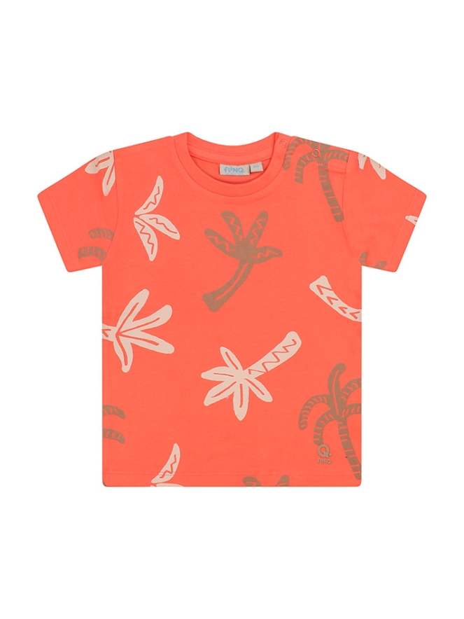 Vrolijk T-shirt met tropische palmbomen over het hele shirt! Van dit shirt krijg je zin in de zomer!