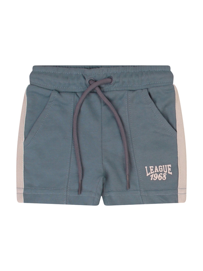 LEAGUE 1986. Fijne korte broek van jogging stof. Zacht en comfortabel door de elastische tailleband met koordje. Met een sportieve touch door de streep op de zijkant.