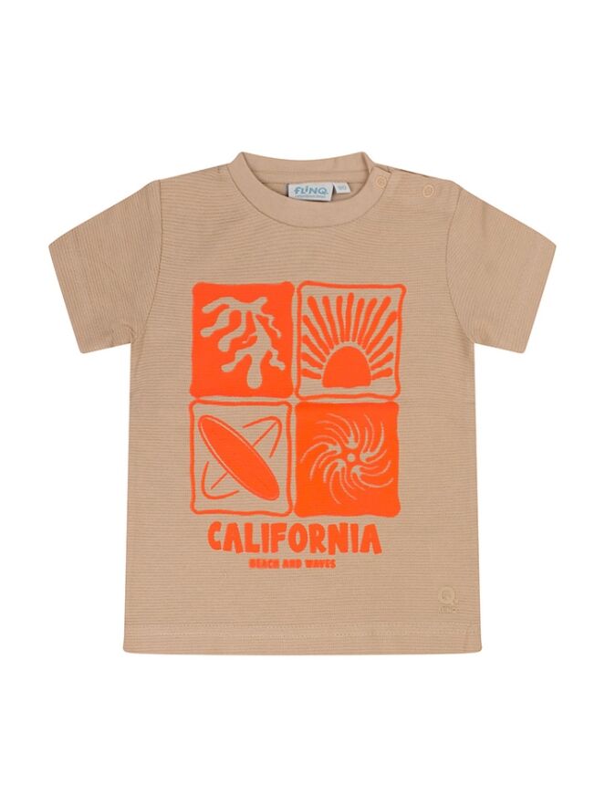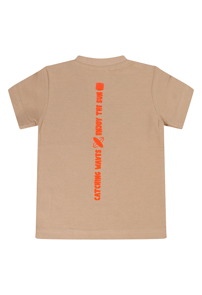 Dit zomerse shirt met beach thema is van een wat dikkere stof met een lichte ribbel. Zowel voor als achterop staat een mooie print in contrast kleur. Voor beach boys die uitkijken naar mooie zomerse dagen.....