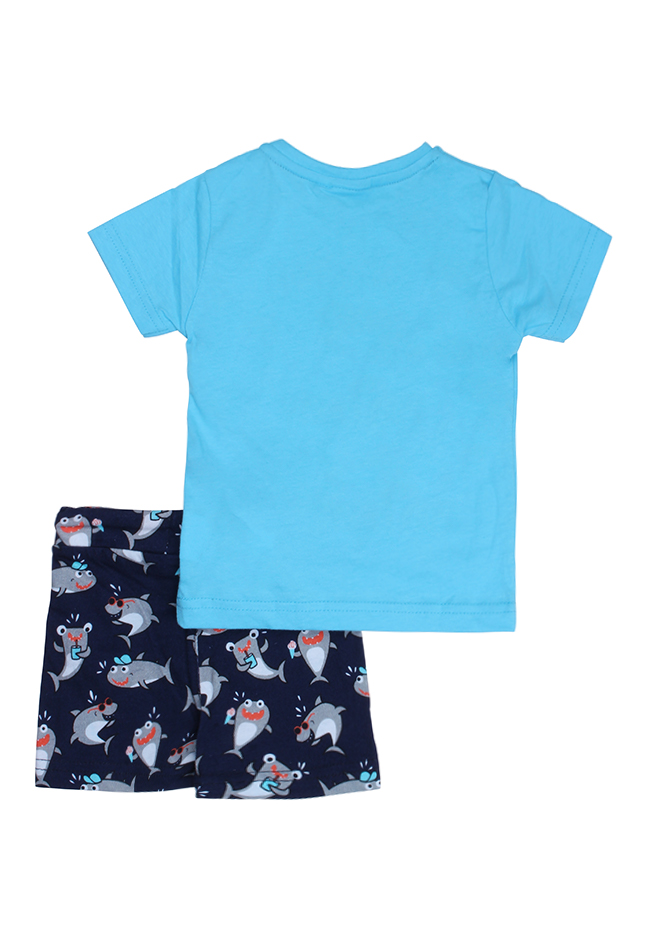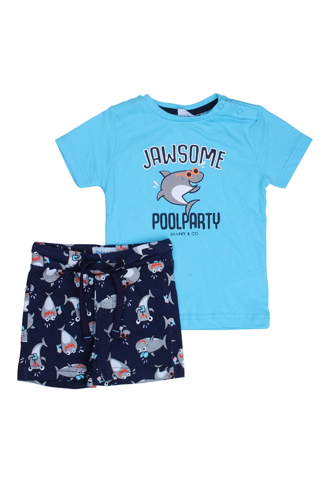 Setje met t-shirt en matching broekje voor baby jongens. Het broekje heeft een haaien print en het t-shirt heeft de tekst Jawsome en een coole haai. Materiaal: 100% katoen