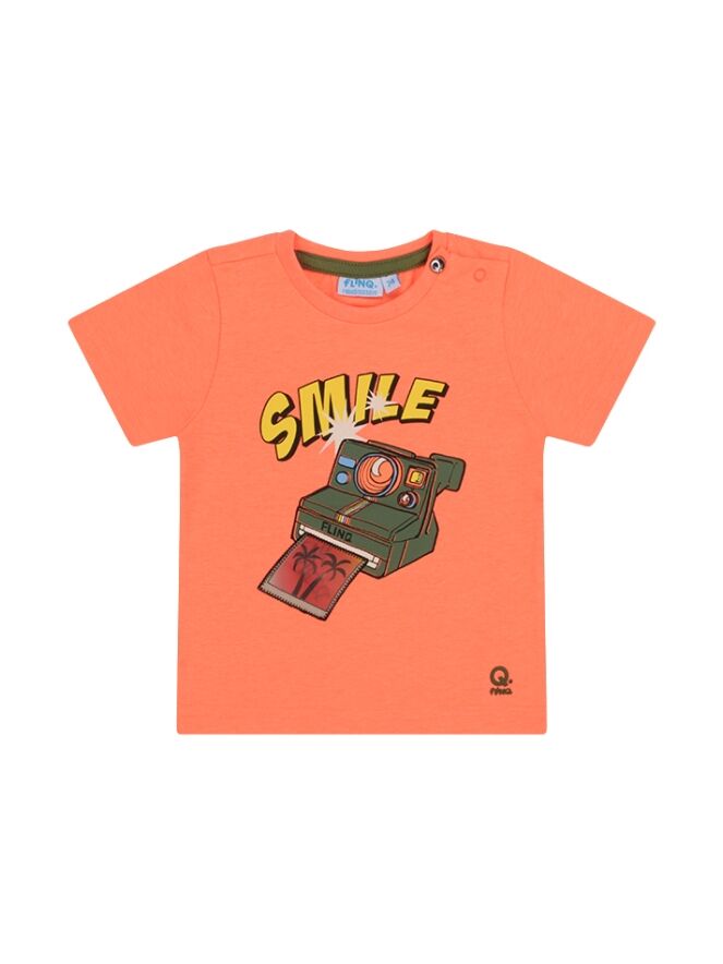 T-shirt van FlinQ. Het t-shirt heeft een fototoestel print met een holografische foto. Materiaal: 65% polyester, 30% katoen, 5% elasthan. Wassen op 30 graden, niet bleken, niet in de droger, niet strijken.