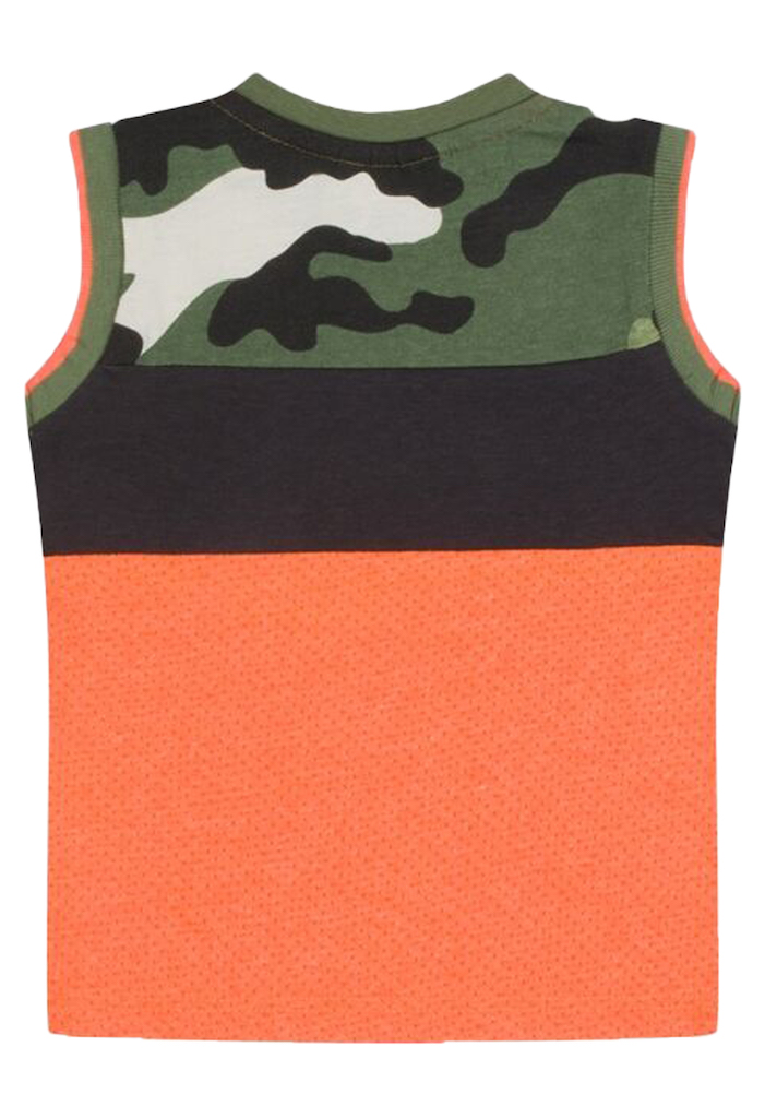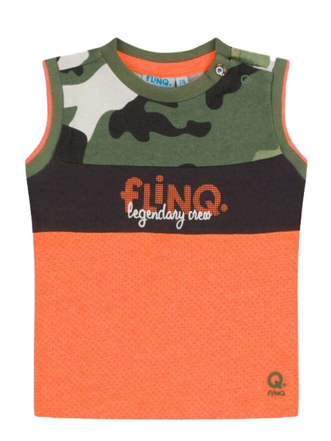 Hemd van FlinQ. Het hemd heeft een mesh body, een camouflage overkant en in het midden een band met een tekst. Materiaal: 65% polyester, 35% katoen. Wassen op 30 graden, niet bleken, niet in de droger, kan gestreken worden.